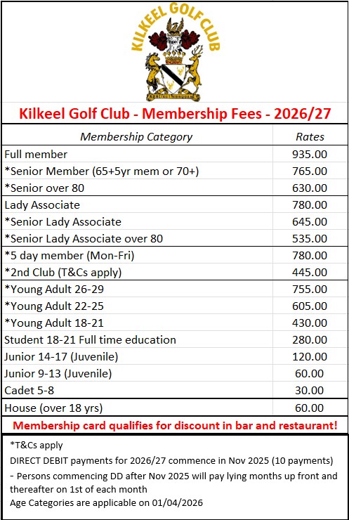 Membership / Green Fees 2026/7